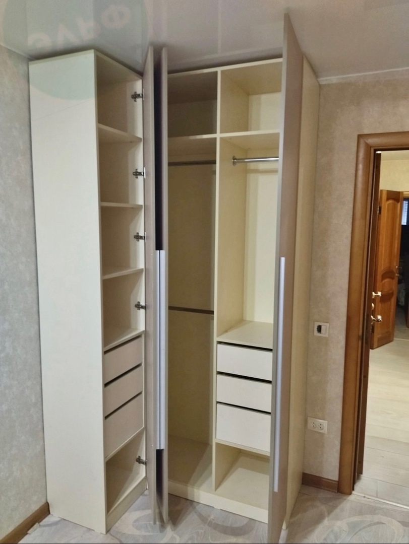 "Начинка" изделия - выдвижные ящики, полки и штанги для плечиков: всё для максимально удобного хранения одежды!
