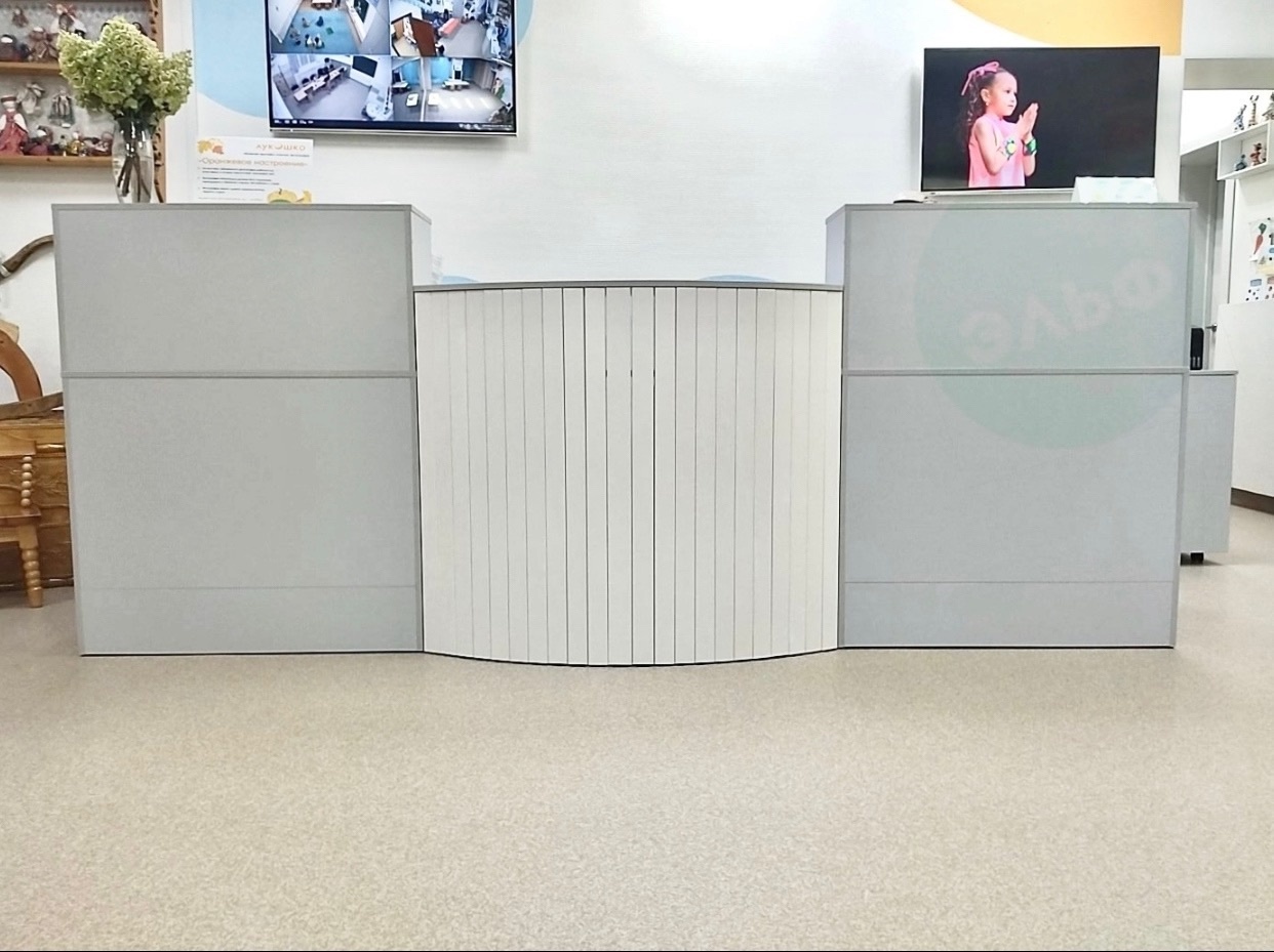 Заходить в детское учреждение и видеть качественное и визуально привлекательное изделие - одно удовольствие! Уверены, что администратору будет только в радость работать за его новым ресепшеном.