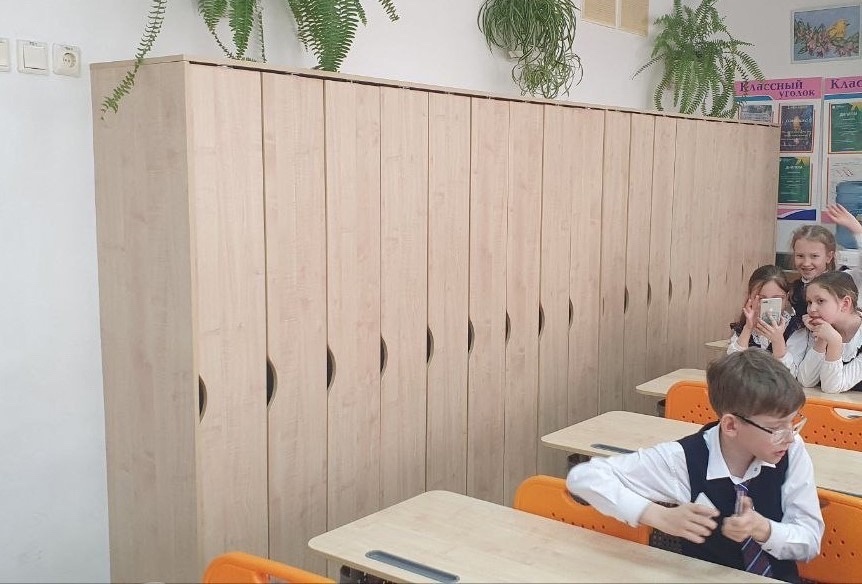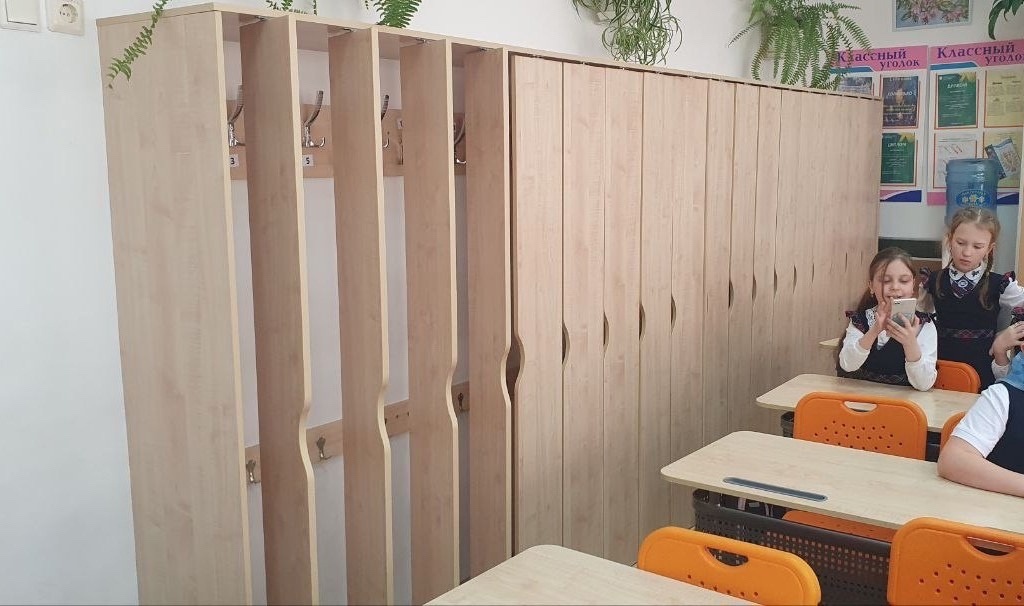 Очень удобно, когда шкафчики для одежды расположены прямо в классе!