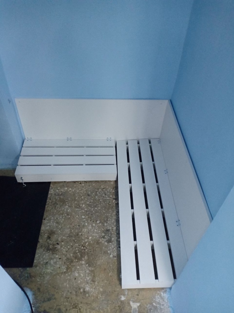 А вот и пример такого изделия - складная скамейка, которая может быть сложена в более компактный вариант, что помогает значительно сэкономить место.